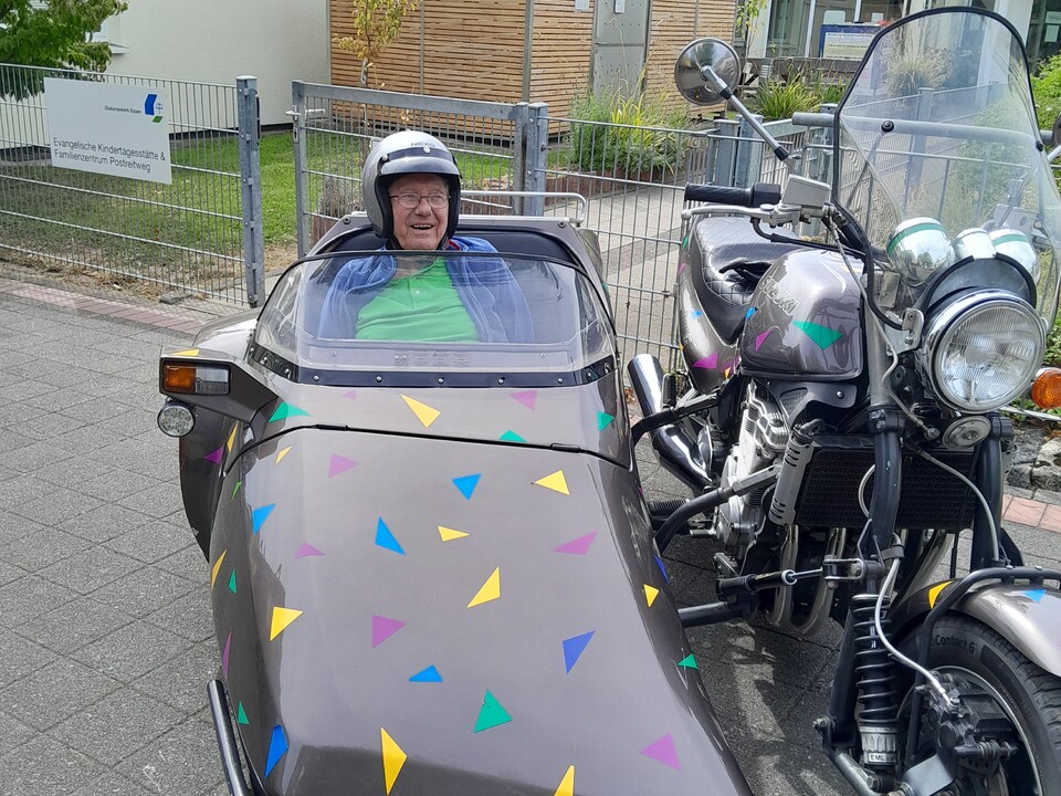 Am 25. August 2025 hat der Motorradclub „Flying Angels“ unsere Gäste aus dem Café „FrohSinn“ im Beiwagen bei bestem Wetter durch Essen-Frohnhausen gefahren. Die zehn Gäste aus dem Café waren total begeistert, alle haben sich getraut mitzufahren. Anschließend gab es ein gemeinsames Kaffeetrinken mit den vier Fahrern.