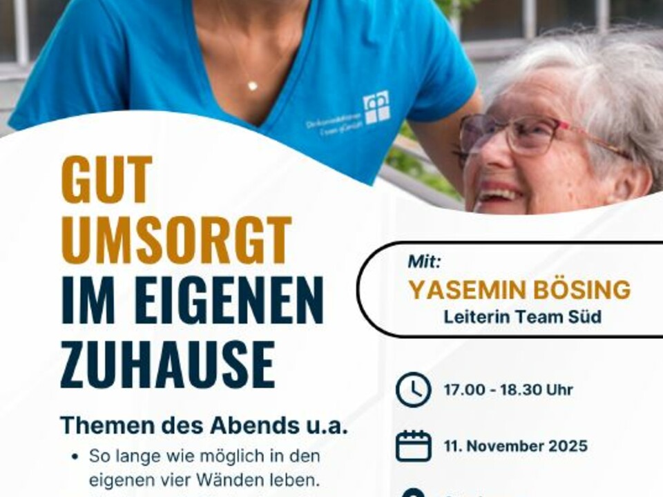 Auf all diese Fragen finden Sie am 11. November 2025 im Stephanus-Gemeindezentrum, Langenbergerstr. 434 a, in 45277 Essen eine Antwort. Die Pflegedienstleiterin unserer Diakoniestationen Essen Team Süd erläutert von 17:00 bis 18:30 Uhr alle Möglichkeiten einer ambulanten Pflege, stellt unser Leistungsangebot vor und informiert zu den Pflegegraden.