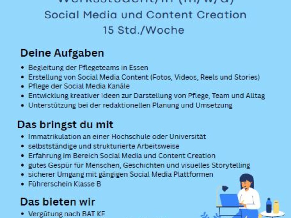 Wir suchen zur Unterstützung für unseren Bereich Marketing eine/n Werkstudent/in mit Erfahrung in Social Media